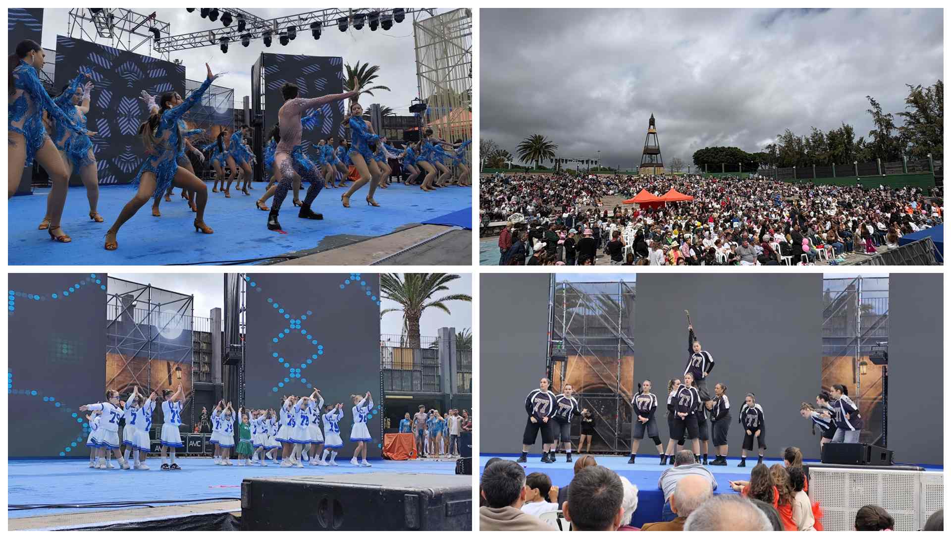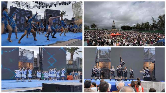 A ellos se sumaron numerosos grupos vinculados al Club de Baile Leticia Mujica, con alumnado procedente de distintos centros educativos como los CEIP Poeta Francisco Tarajano, Poeta Tomás Morales, La Garita, María Suárez Fiol, Roque Aguayro, Chano Sánchez o San Juan, además de la participación del Colegio Arenas.