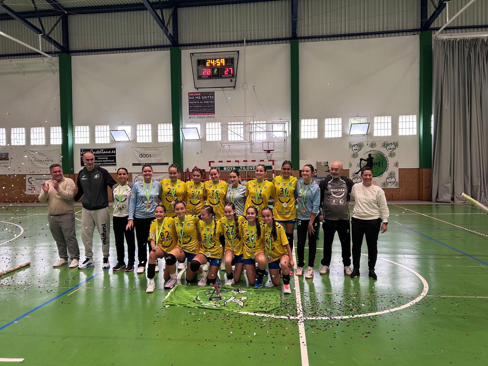 El Rocasa Gran Canaria se proclamó campeón de la Final 4 Infantil Femenina de la Liga Cabildo de Gran Canaria de balonmano, tras completar una destacada fase final que se desarrolló este pasado fin de semana en el Polideportivo Municipal de la Villa de Moya.