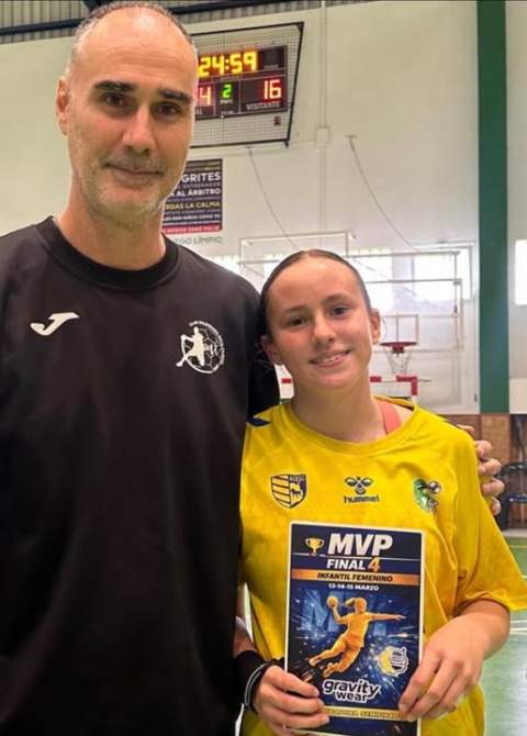 Asimismo, el concejal felicita a las jugadoras del Rocasa Gran Canaria distinguidas como MVP Gravity Wear Diseños Corporativos de esta Final 4 Infantil Femenina: Yurena Diepa, reconocida como mejor jugadora de la final; Nagore Caballero, MVP de la segunda semifinal de vuelta; y Laura Suárez, MVP de la segunda semifinal de ida.