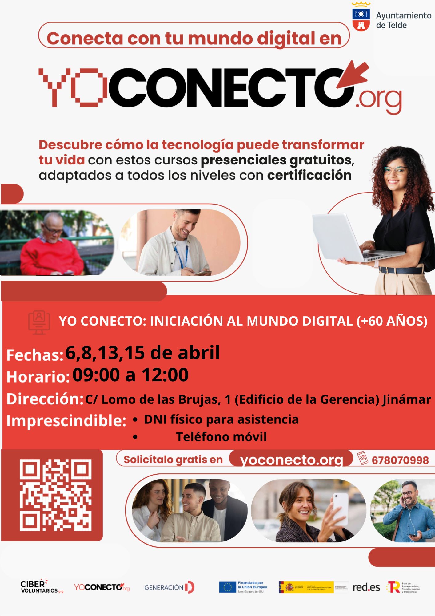 Para asistir a ambos cursos es imprescindible presentar el DNI físico para la asistencia y disponer de un teléfono móvil. Las inscripciones pueden realizarse a través de la web yoconecto.org o llamando al 678 070 998.