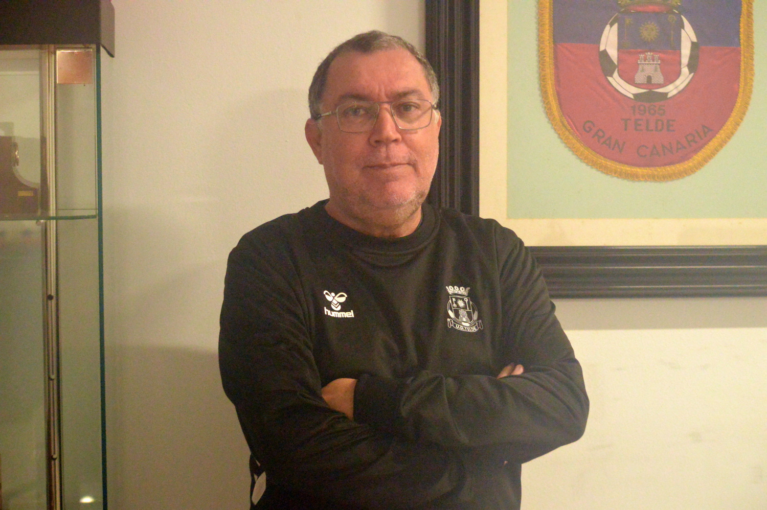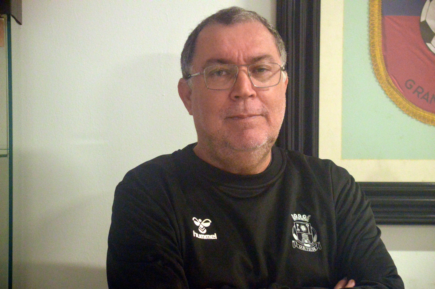 Paco Pepe Trujillo, en la sala de juntas de la UD Telde, al lado de una bandera (Foto: Juan Antonio Hernández)El nuevo director deportivo de la Unión Deportiva Telde, Paco Pepe Trujillo, concedió este lunes su primera entrevista a TELDEACTUALIDAD tras hacerse oficial su nuevo cargo en la entidad en la que llevaba trabajando tres meses en la sombra. Su decisión de volver a dirigir la parte deportiva de un club, pese a abandonarlo en septiembre con el Unión Viera, se debe, según sus palabras: "Porque el Telde es un club histórico, Telde es una ciudad importantísima y su equipo representativo es un reto mucho mayor que el que tenía en el Unión Viera".