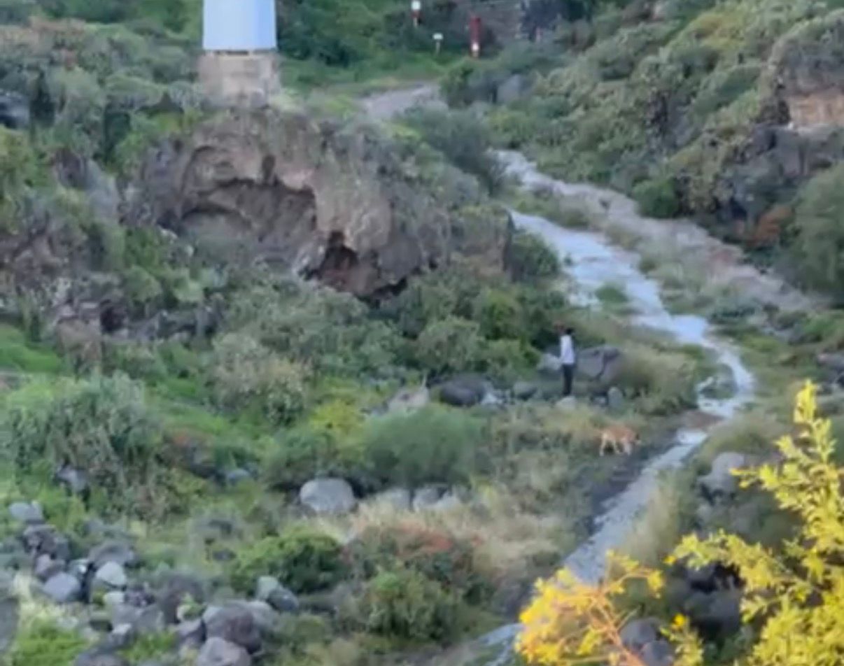 El Ayuntamiento ha informado que el barranco que discurre frente a Tecén, barrio limítrofe de los municipios de Telde y Valsequillo, también baja con agua.