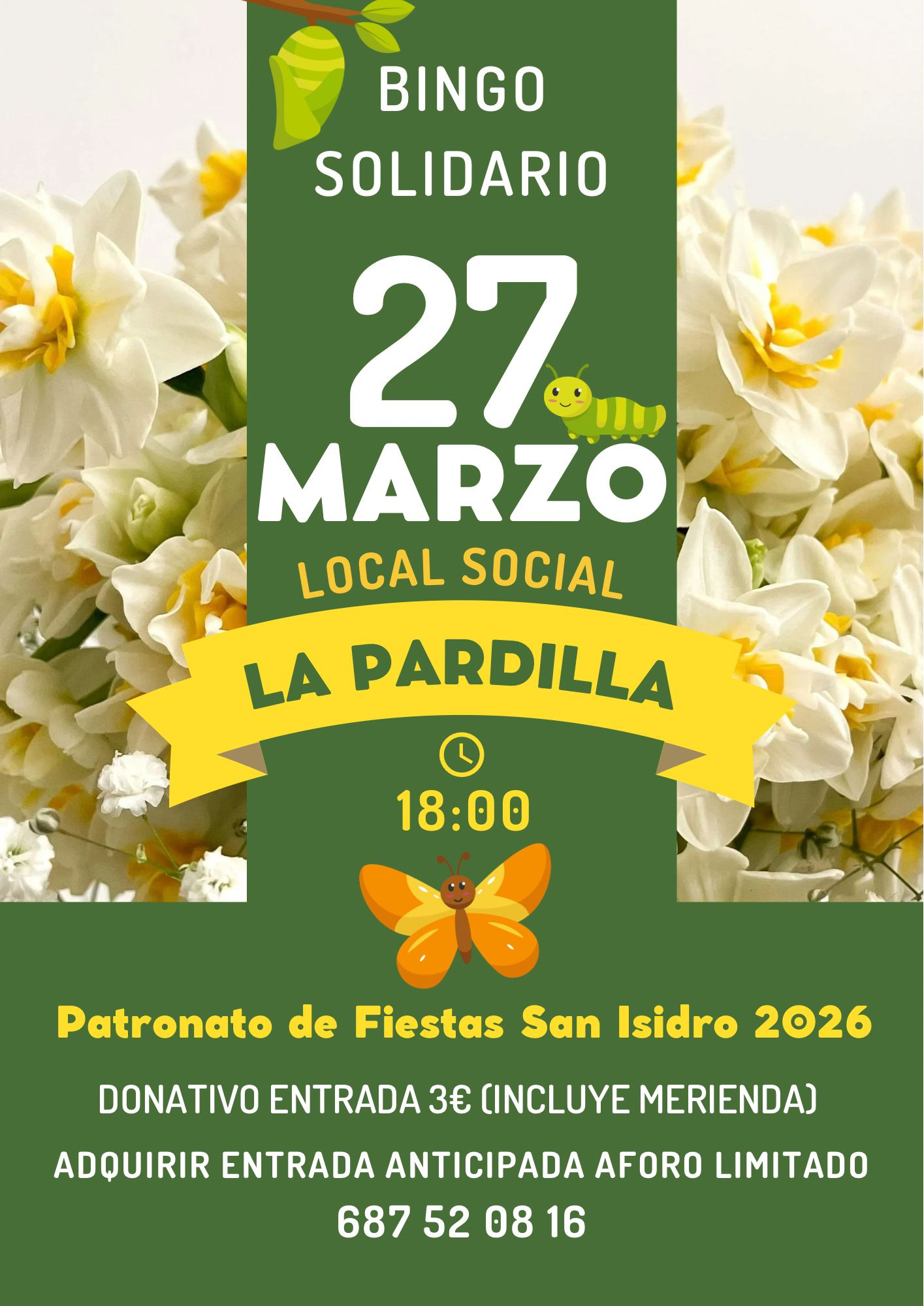 El Patronato de Fiestas de San Isidro celebrará el próximo 27 de marzo, a las 18.00 horas, un bingo solidario con el objetivo de recaudar fondos para la organización de las fiestas patronales que tendrán lugar el próximo mes de mayo.