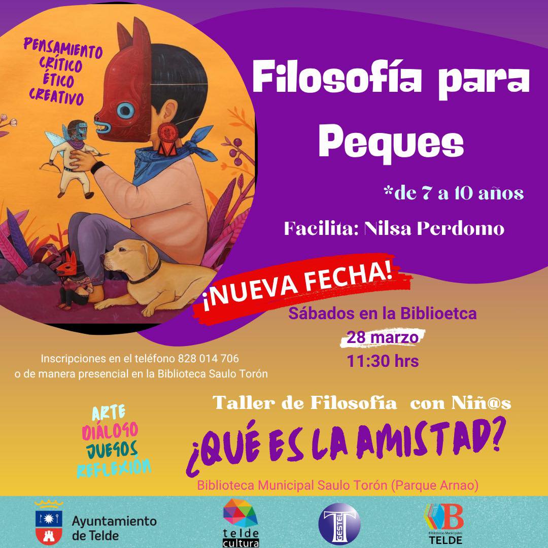 Nilsa Perdomo, quien cuenta con 12 años de experiencia trabajando en el aula desde este enfoque hacia la infancia, volverá a impartir el Taller de Filosofía para Peques en Telde el próximo sábado, 28 de marzo, a partir de las 11.30 horas. Las inscripciones se pueden realizar en el mostrador de la biblioteca Saulo Torón (Parque Arnao), o llamando por teléfono al número 828-014-706.