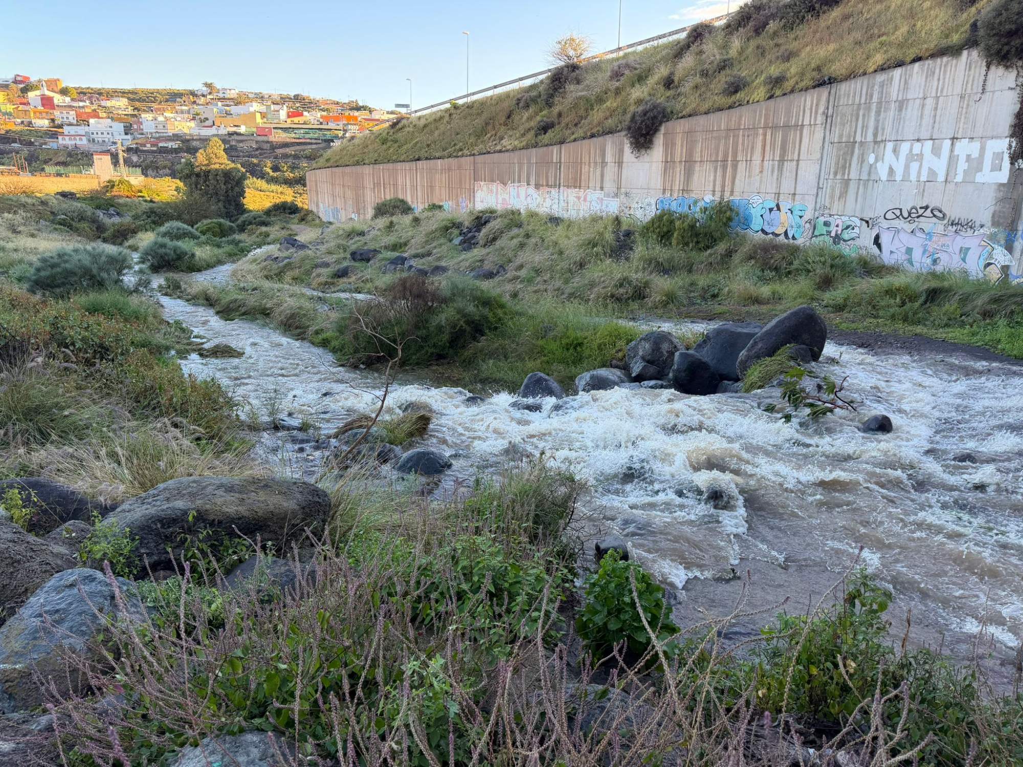 Las lluvias registradas durante la madrugada de este lunes en las medianías y zonas de cumbre del municipio de Telde han devuelto fuerza al caudal del Barranco Real, que vuelve a presentar un flujo notable tras el descenso experimentado durante la jornada del domingo debido a la disminución de las precipitaciones.