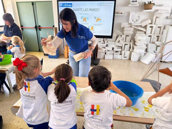 Un total de 176 alumnos del Colegio Heidelberg, de entre cuatro y siete años, han recibido talleres gratuitos durante dos días consecutivos por parte del equipo de enfermería del Hospital Universitario Vithas Las Palmas en el marco del programa de educación en salud denominado Vithas Aula Salud Colegios.