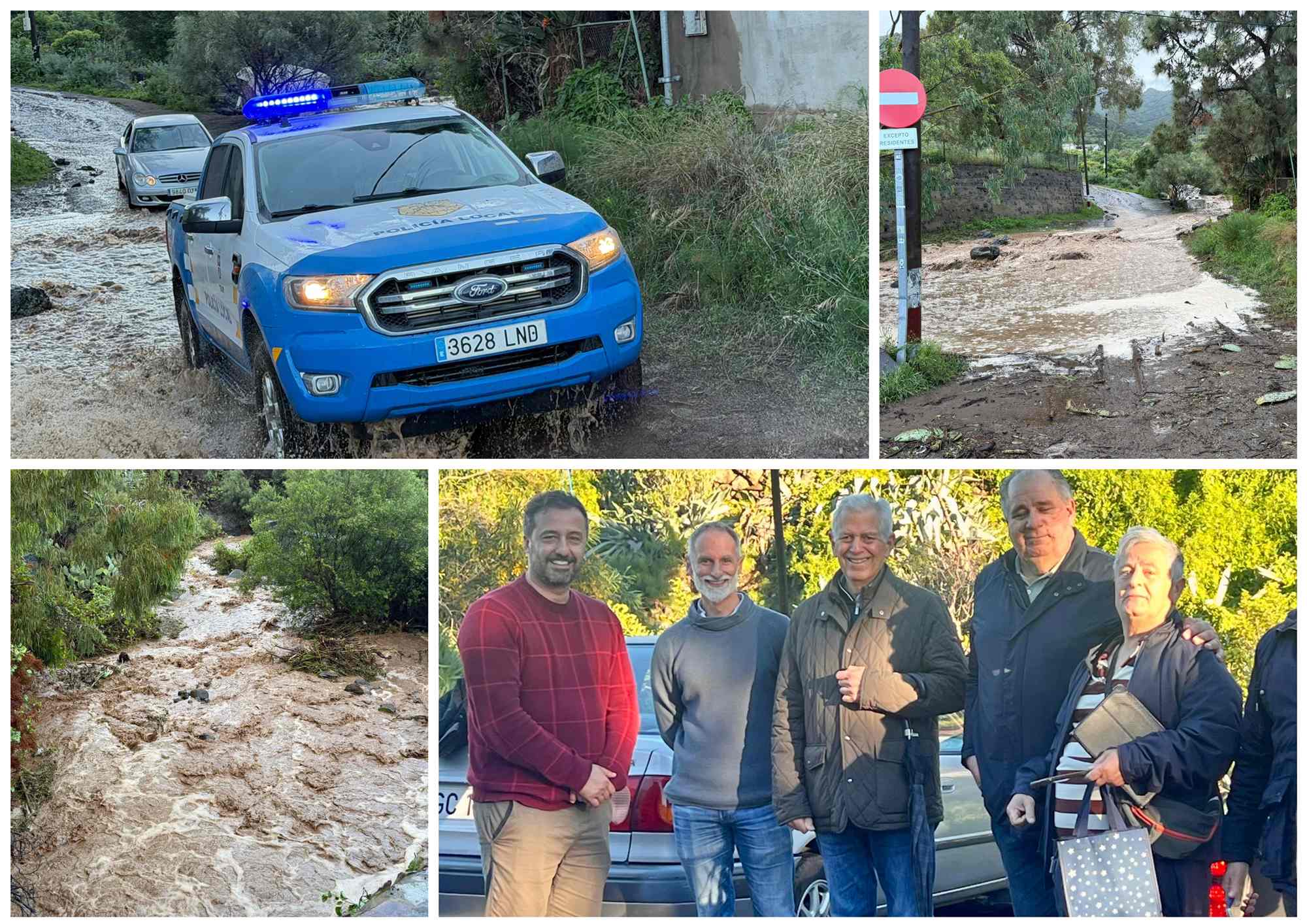 El alcalde Juan Antonio Peña, junto al concejal de Seguridad, Miguel Rodríguez, y el edil de Distrito Cumbre, Juan Martel, se desplazaron hasta el barrio para supervisar el estado de los accesos, espacios públicos y servicios afectados por la crecida.
