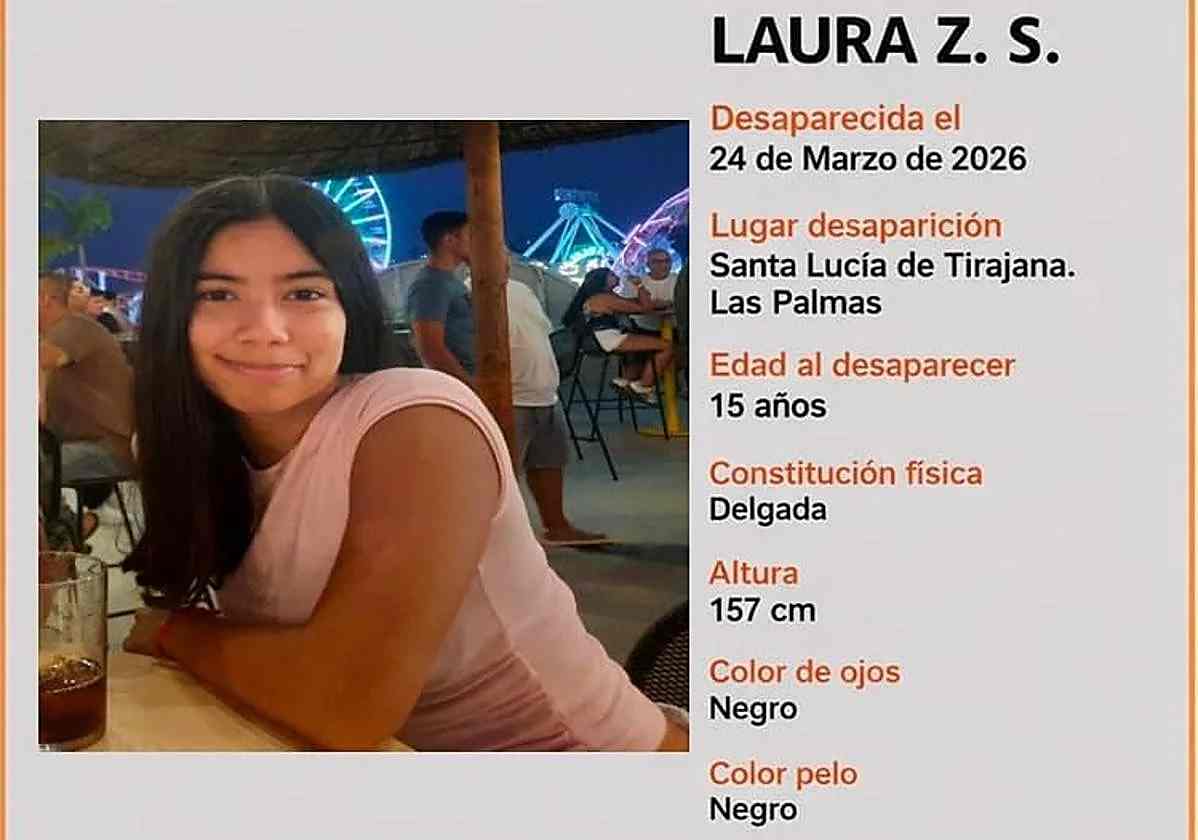 La Guardia Civil ha activado una búsqueda urgente para localizar a Laura Z. S., una menor de 15 años desaparecida desde el pasado 24 de marzo en el municipio de Santa Lucía de Tirajana, en Gran Canaria.