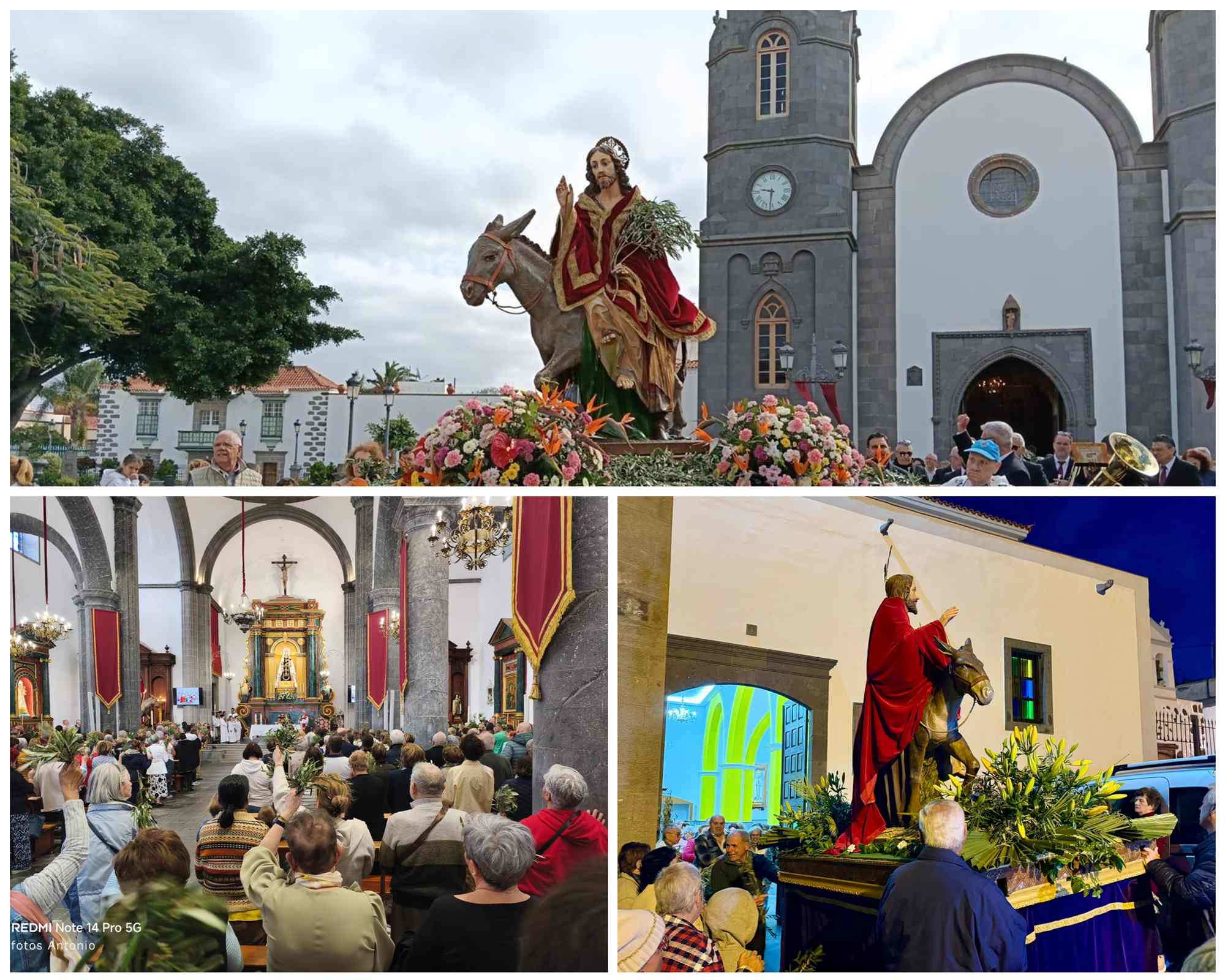 La jornada comenzó a las 10.00 horas con la bendición de ramos en la plaza de Basílica de San Juan Bautista, desde donde partió la procesión que recorrió las calles León y Castillo, Farmacéutica Pino Suárez López, Poeta Fernando González y la avenida de la Constitución hasta la plaza de Parroquia de San Gregorio Taumaturgo, donde se celebró la eucaristía.