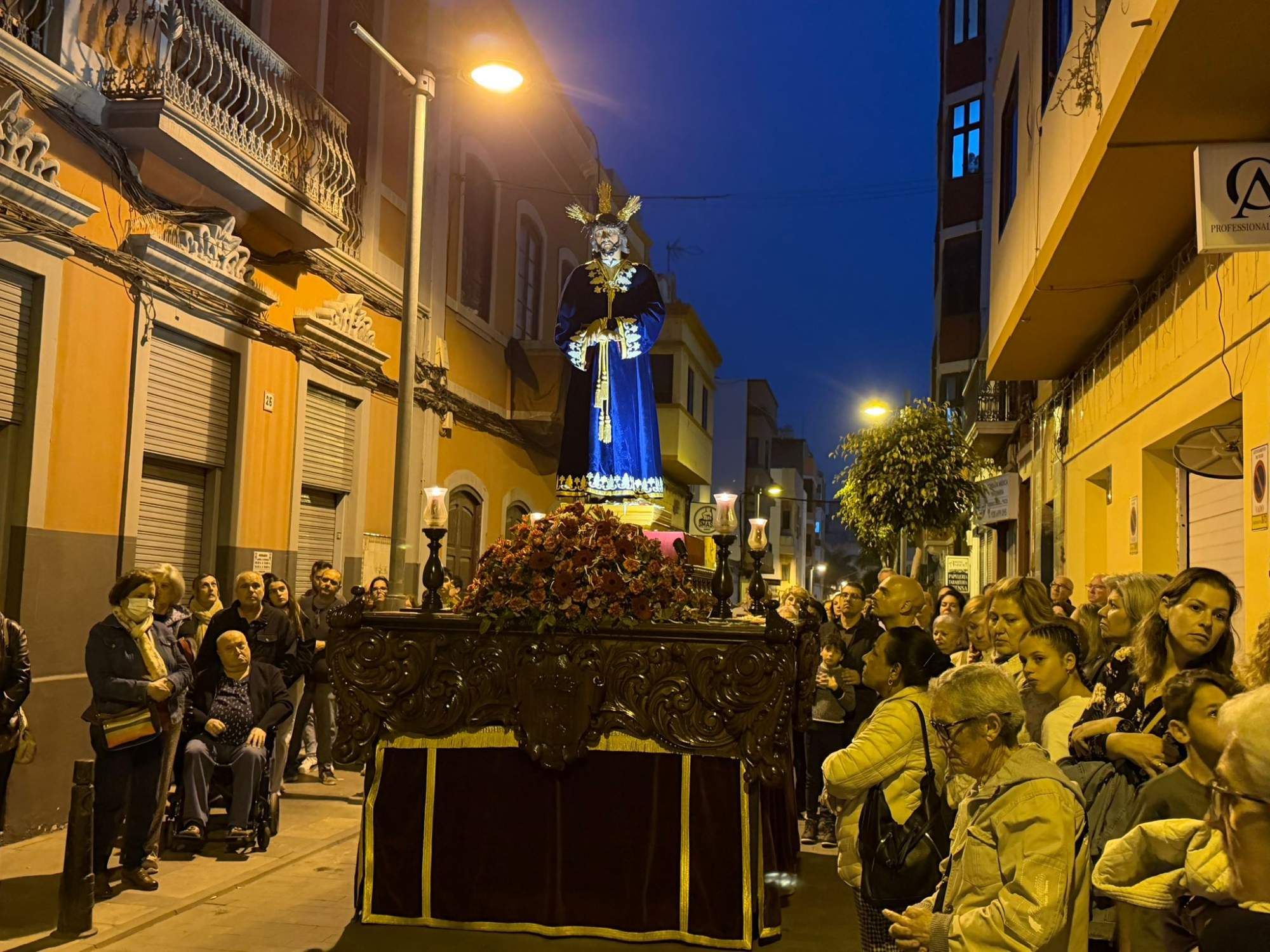 Durante la procesión, la imagen estrenó potencias y corona de espinas, piezas donadas por la Asociación Cultural Amigos del Carmen y bendecidas el pasado domingo en el templo parroquial.