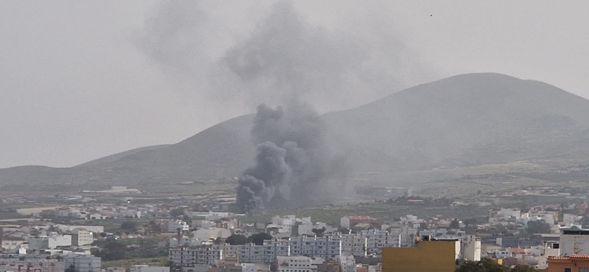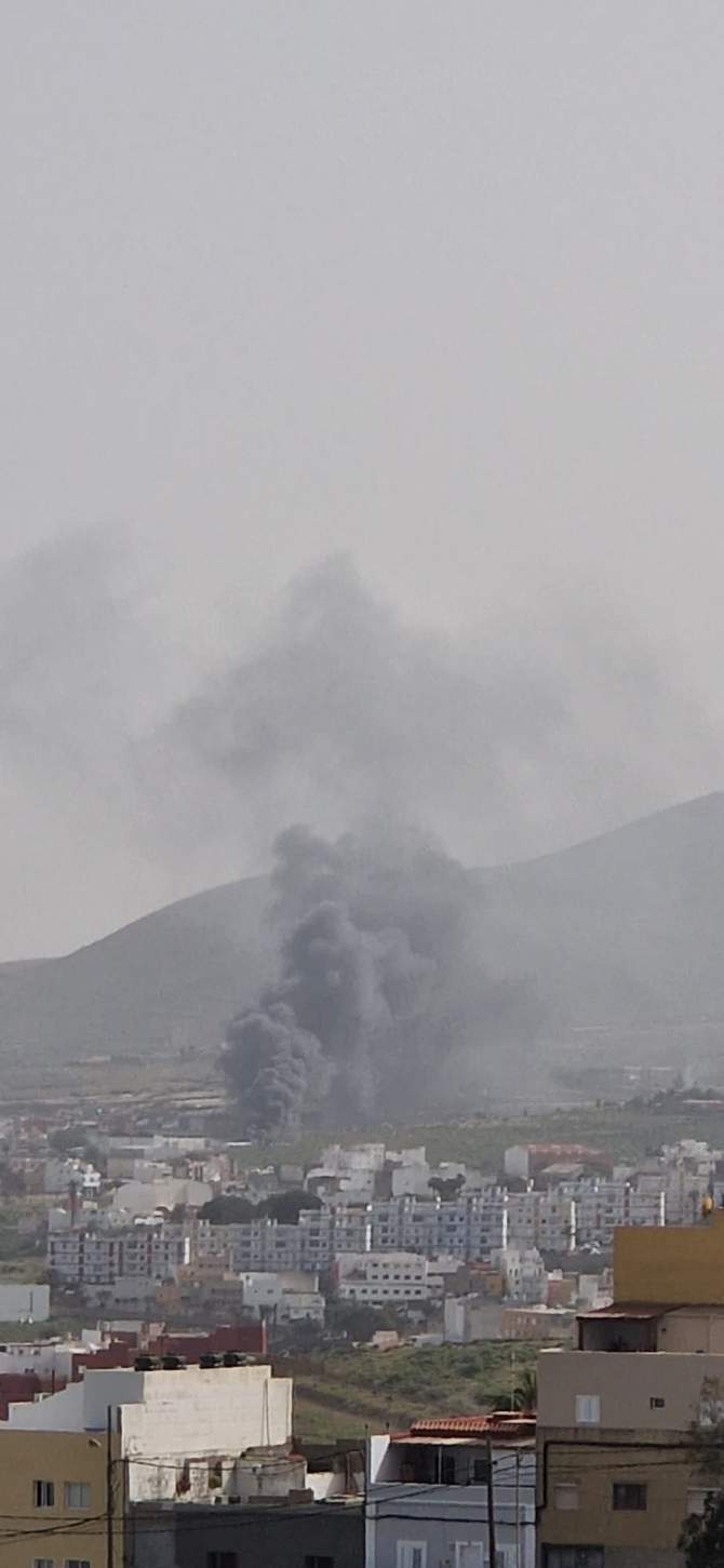 Un incendio declarado en la tarde de este miércoles, 1 de abril, en una nave situada en la subida a Las Medianías, por encima de la zona de Lomo Cementerio, provocó la alarma vecinal en distintos puntos de Telde tras originar una densa columna de humo negro visible a gran distancia. El aviso del siniestro se recibió al filo de las 16.30 horas.