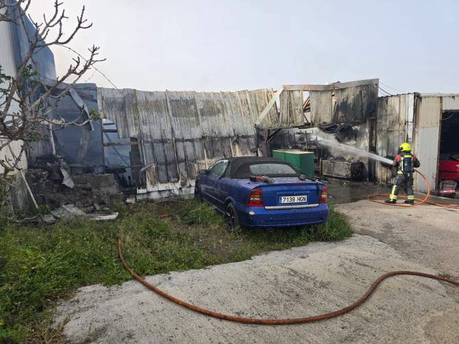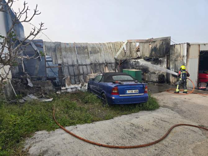 El fuego se originó en la antigua nave de Parques y Jardines, sita en el camino a Lomo Salas, actualmente utilizada como espacio de almacenamiento de caravanas. Como consecuencia del incendio, dos vehículos resultaron completamente calcinados, sin que se hayan registrado daños personales.