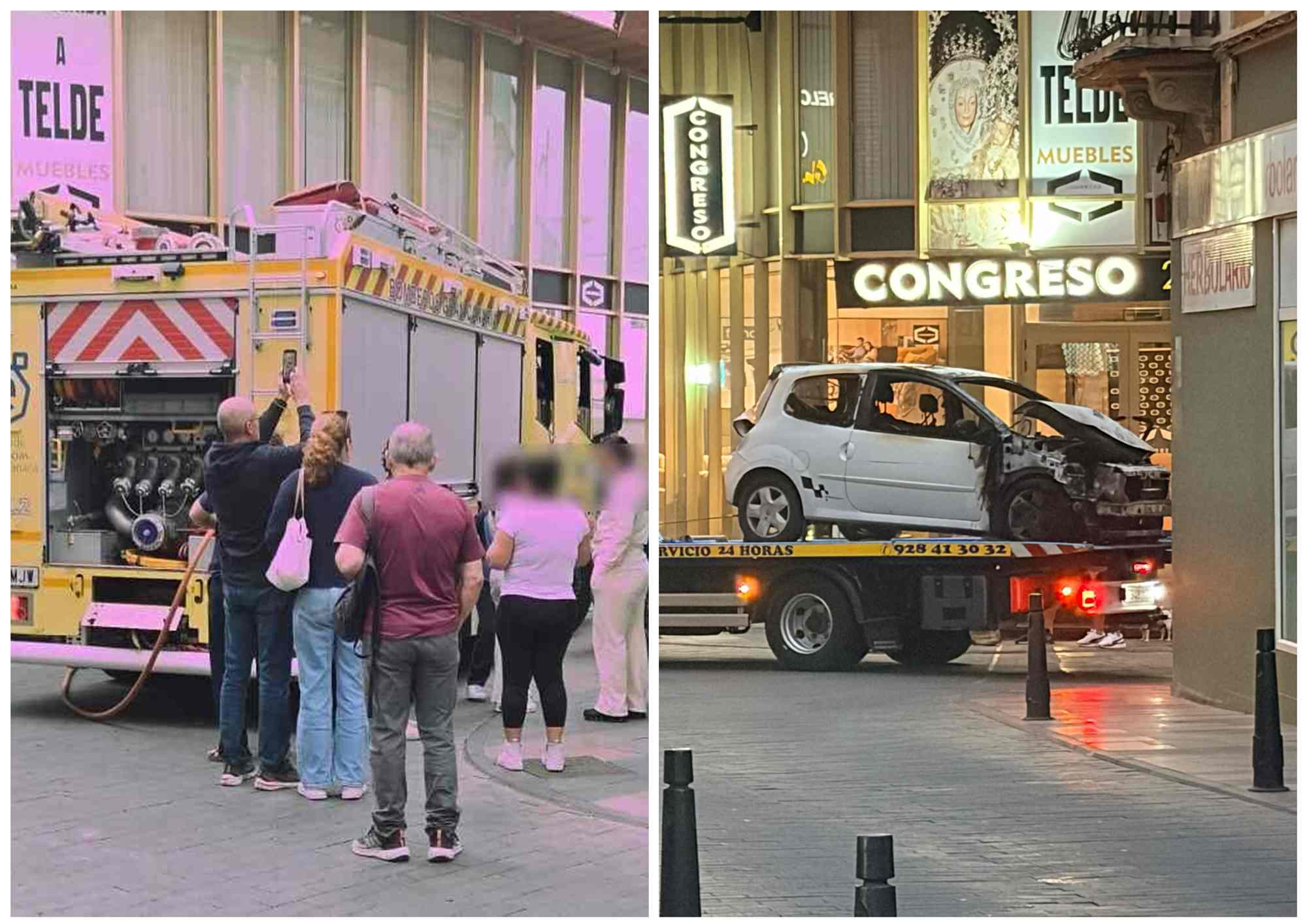 El incendio se produjo a la altura de la antigua panificadora Betancor y avanzó con rapidez, dejando el motor del turismo completamente calcinado en cuestión de pocos minutos, lo que generó expectación entre viandantes y conductores que transitaban por la zona.