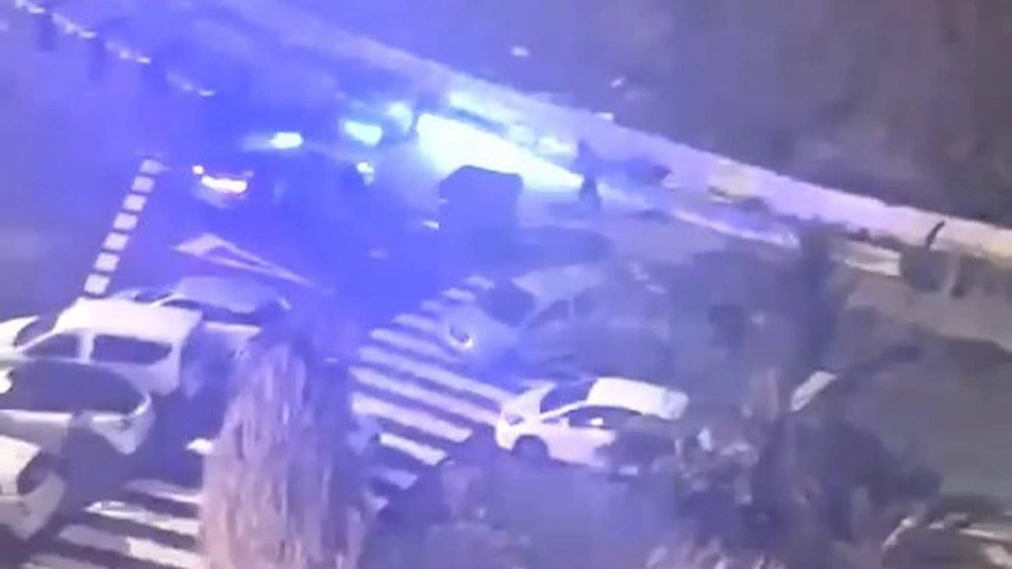 La escena dejó imágenes poco habituales en la zona: agentes desplegados, vehículos dañados y vecinos siguiendo la intervención desde sus viviendas o a pie de calle.