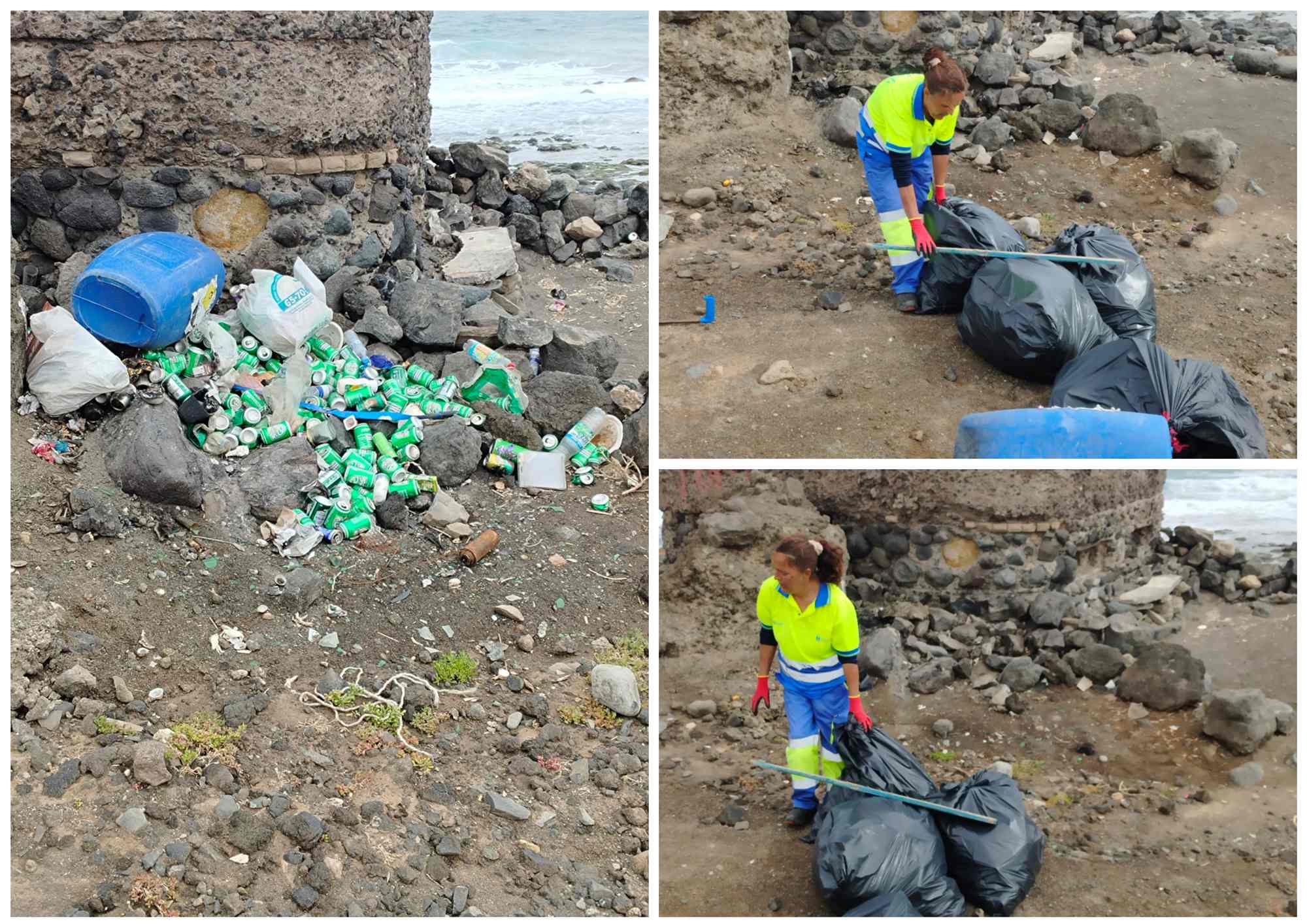 El área de Limpieza y Recogida de Residuos Sólidos del Ayuntamiento de Telde ha llevado a cabo en las últimas horas una intervención de retirada de basura en el entorno de la playa de La Restinga, junto a un antiguo búnker situado en este enclave del litoral próximo al Centro Comercial Las Terrazas, tras las reiteradas quejas trasladadas por usuarios habituales de la zona.