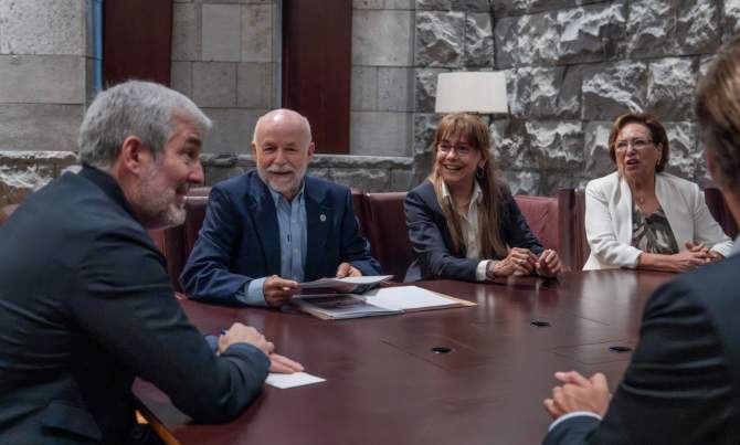Los representantes de esta organización de antiguos alumnos de la Universidad de La Laguna informaron al titular del Gobierno de Canarias y al viceconsejero de Universidades de los actos que están organizando para celebrar los 25 años de Alumni.