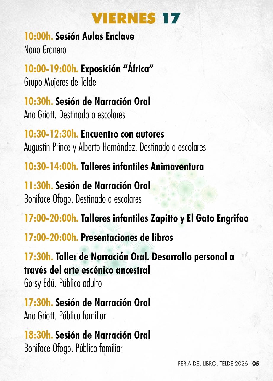 Cartel de concierto del cantautor Marwan en la Feria del Libro/TA.La Feria del Libro de Telde 2026 continúa este viernes con una de sus jornadas más completas y participativas en la Plaza de San Juan, dentro de una edición dedicada a África que ha arrancado con muy buenas sensaciones entre librerías participantes y público asistente.