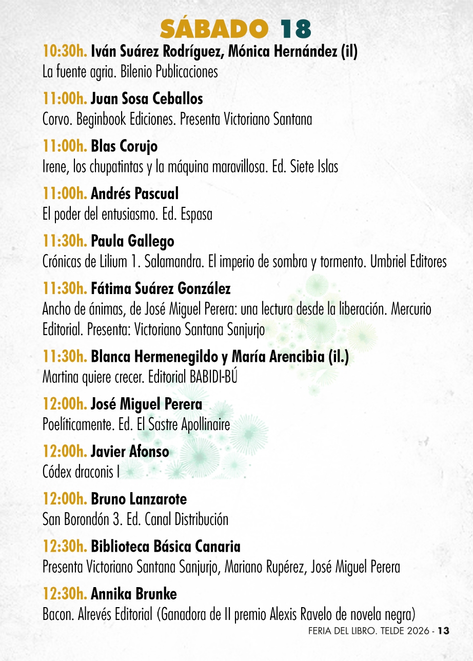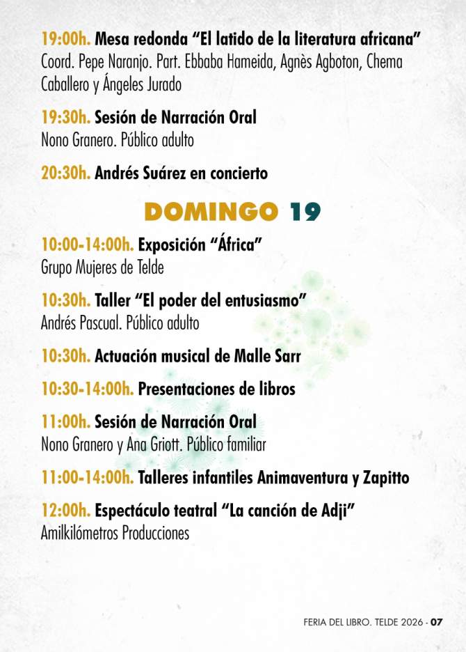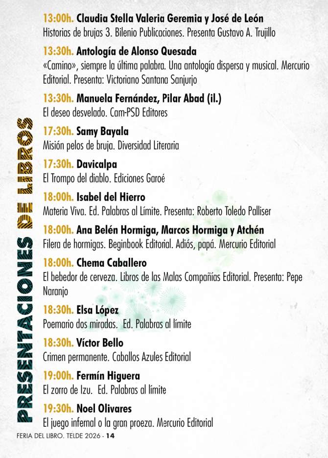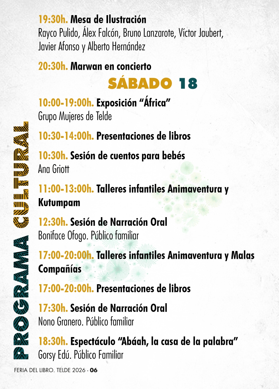 La Feria del Libro de Telde continúa así reforzando su papel como espacio de encuentro entre literatura, música y narración oral en el corazón de la ciudad, con una programación pensada para todos los públicos y con especial protagonismo del diálogo entre culturas.