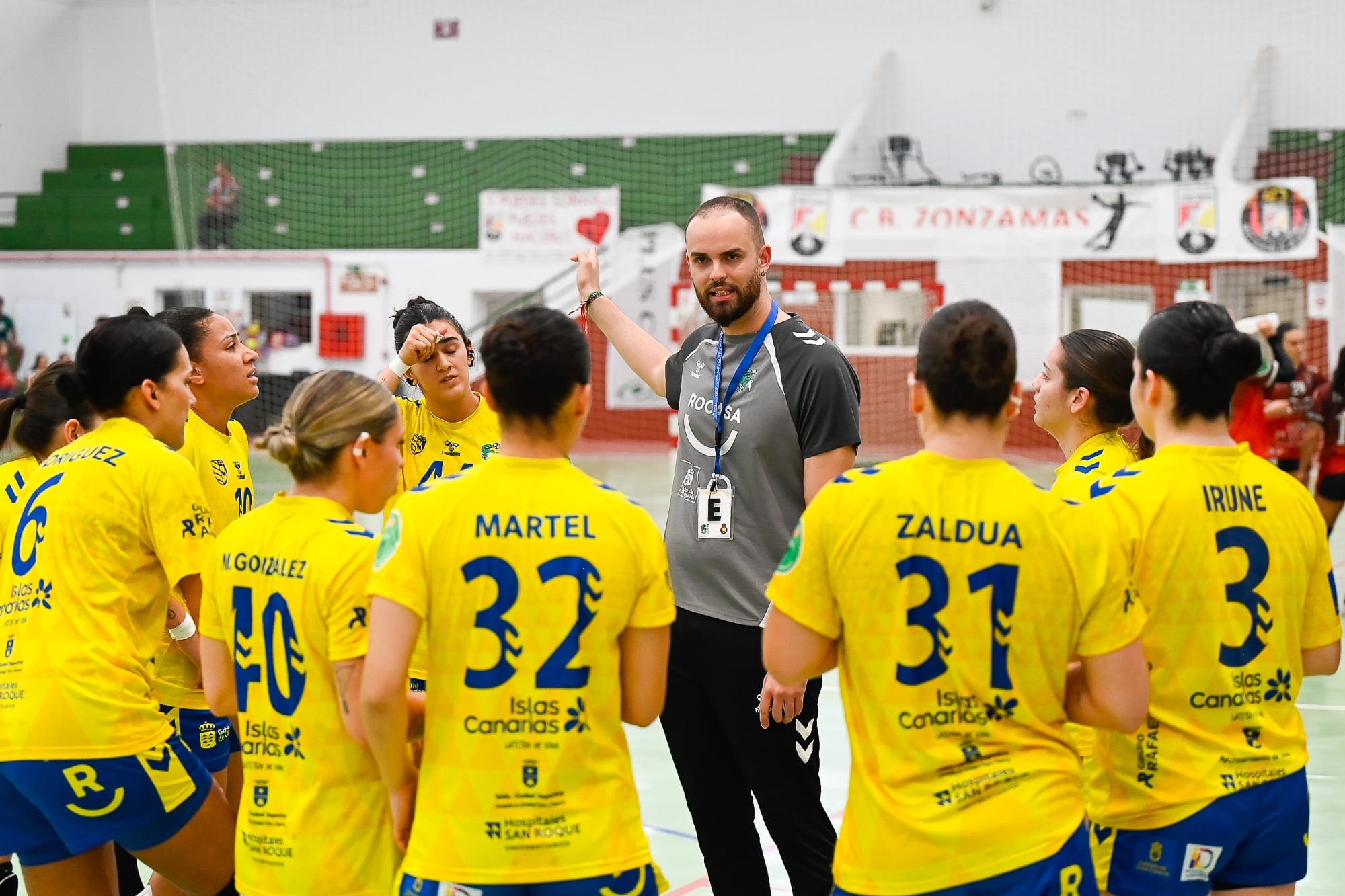 Con esas bases, el equipo teldense logró abrir brecha en el marcador y alcanzó una ventaja de 3-7 mediado el primer tiempo, obligando al Zonzamas a reaccionar. El conjunto lanzaroteño trató de corregir su funcionamiento con un tiempo muerto en el minuto 13, pero el Rocasa mantuvo el control del partido durante buena parte de la primera mitad.