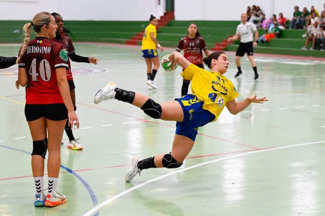 En lo estrictamente deportivo, el conjunto de Dejan Ojeda ofreció una puesta en escena seria y competitiva. Tras unos primeros compases de tanteo, el Rocasa fue imponiendo su ritmo gracias a una defensa 6:0 bien ajustada y a la seguridad que volvió a transmitir Silvia Navarro bajo palos.