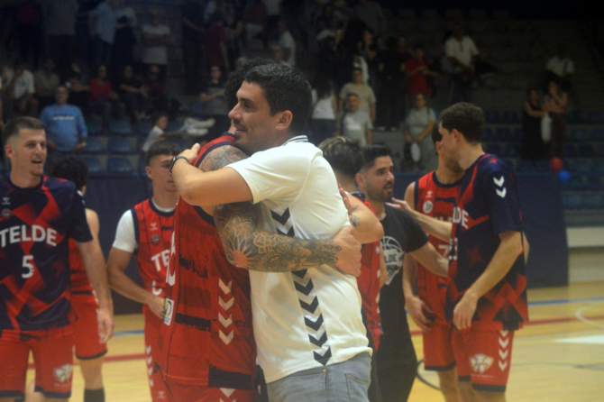 Tony Esparragón celebra la permanencia del CB Telde (Foto: Juan Antonio Hernández)El entrenador del Club Baloncesto Telde, Tony Esparragón, se mostró satisfecho tras sellar la permanencia en Tercera FEB con la derrota del Grupo Egido Pintobasket ante el Real Canoe (su equipo perdió frente al Zentro Basket Madrid), aunque defendió que el objetivo no se explica únicamente por el resultado del rival directo: “El objetivo lo hemos conseguido porque hemos hecho un buen trabajo en las jornadas anteriores, no porque hoy haya perdido el otro equipo, sino porque hemos conseguido nueve victorias durante el resto de jornadas”.