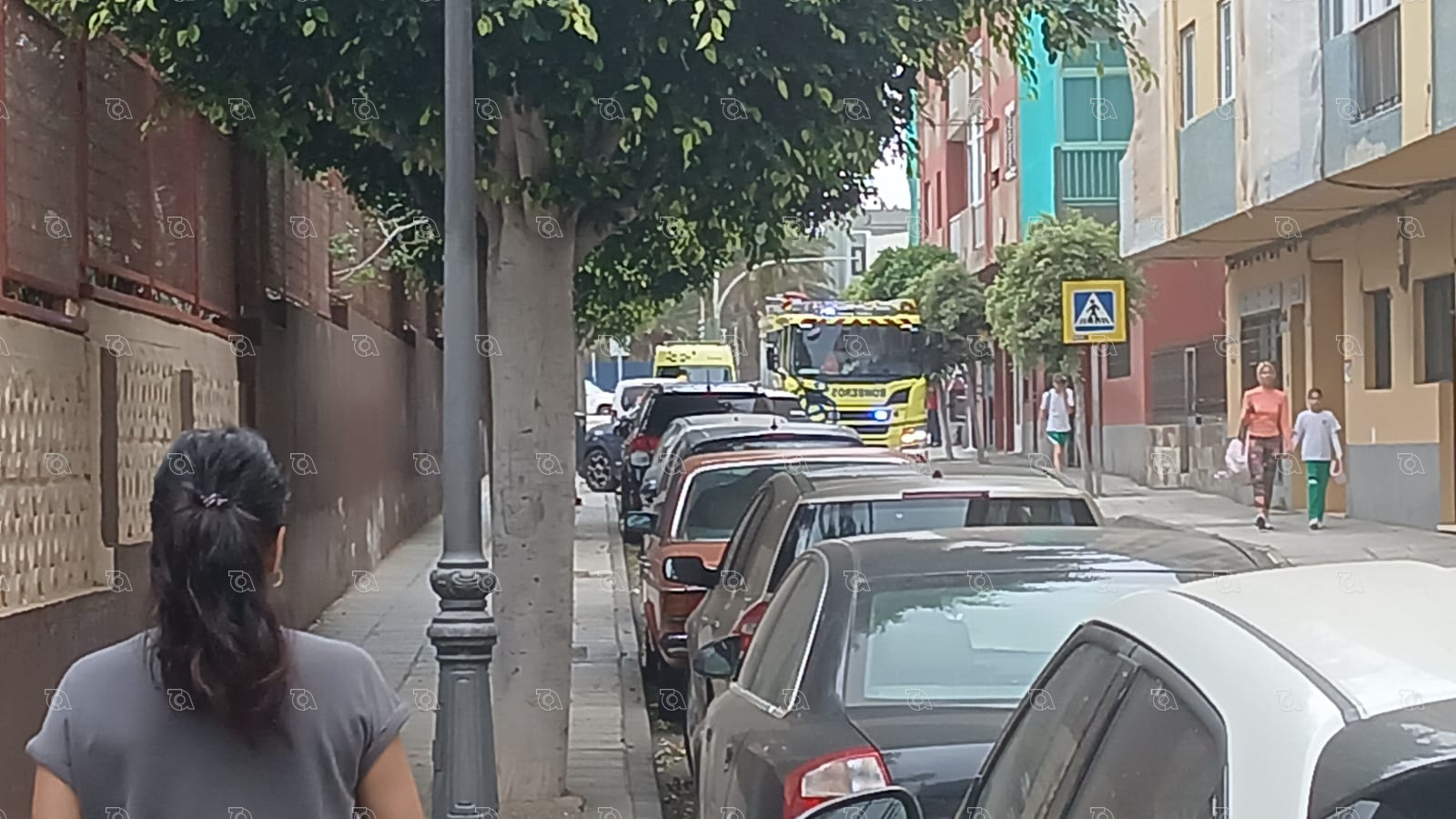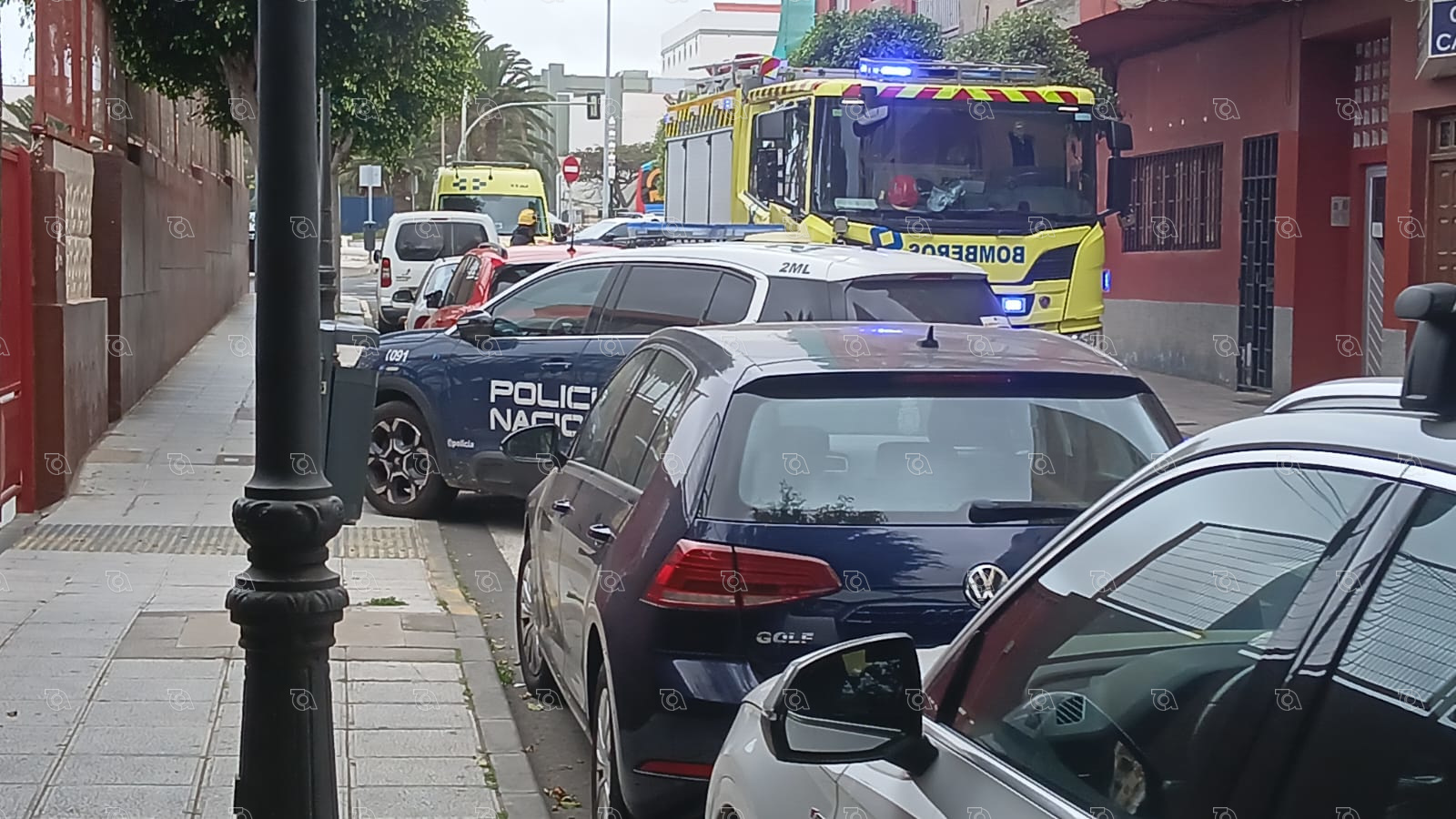 Momento del rescate/TA.Un importante dispositivo de seguridad y emergencias se desplegó hace escasos minutos en el barrio de San Juan, concretamente en la calle José Arencibia Gil, para intervenir en una incidencia registrada en un inmueble plurifamiliar situado junto al instituto de secundaria que da nombre a la vía.