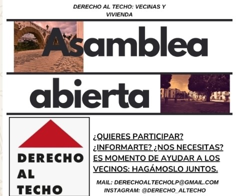 El colectivo ciudadano Derecho al Techo: Vecinas y Vivienda ha convocado una asamblea abierta este sábado 25 de abril, a las 17.00 horas, en la calle 8 de Marzo número 2, en Telde, con el objetivo de informar a la población sobre la situación del acceso a la vivienda y promover la participación vecinal en iniciativas de apoyo comunitario.