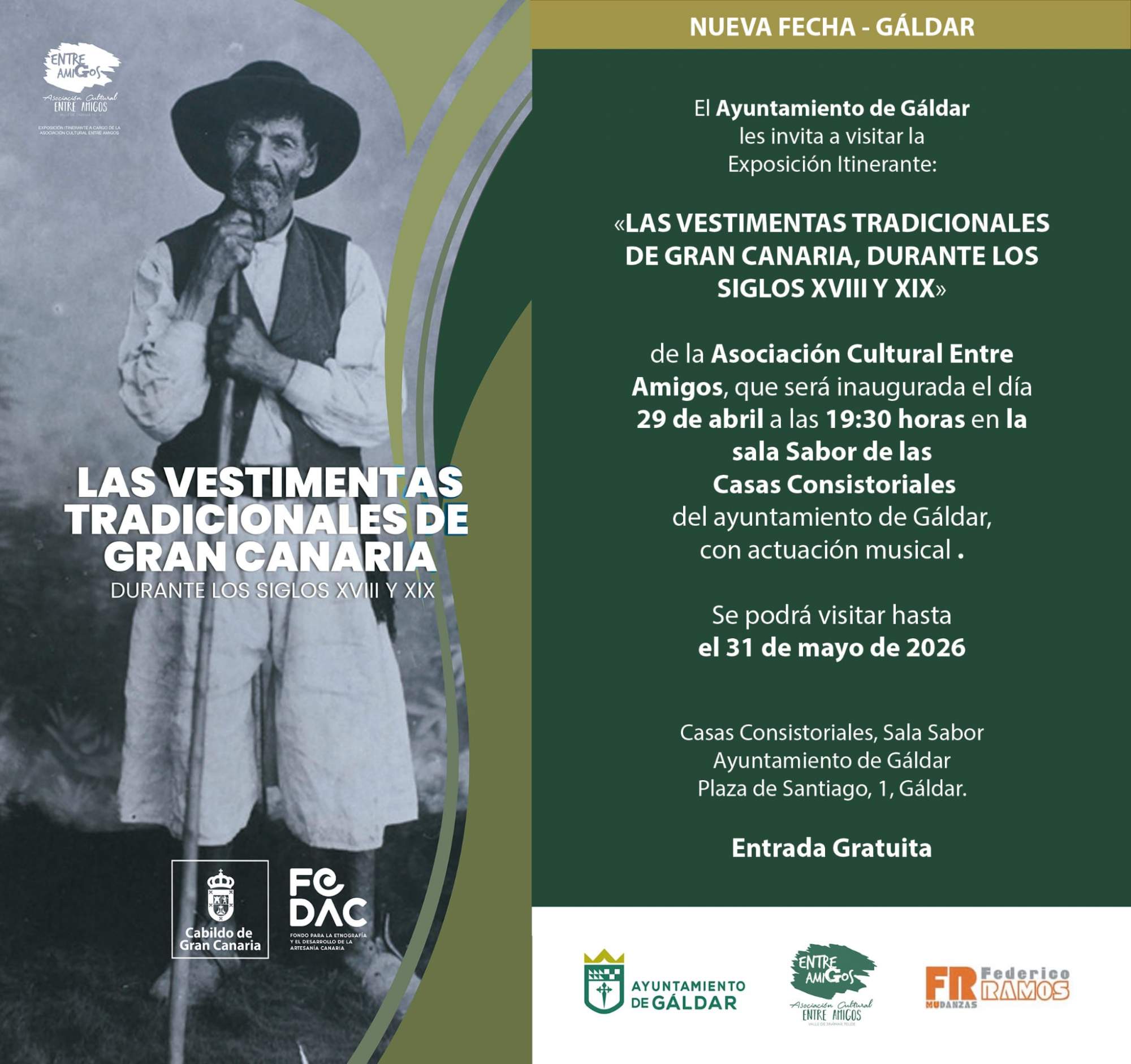 La exposición itinerante “Las vestimentas tradicionales de Gran Canaria durante los siglos XVIII y XIX” llega a Gáldar. Se trata de una propuesta cultural que pone en valor la riqueza del patrimonio textil de la isla y su estrecha relación con la identidad histórica y social del archipiélago.