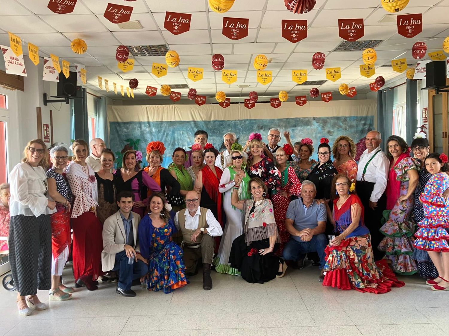 La jornada arrancó con la actuación del Grupo de Sevillanas de Playa del Hombre, dirigido por Natalia Acosta, que abrió el programa con un animado repertorio de rumbas y sevillanas que marcó el tono festivo del encuentro. A continuación, los asistentes participaron en la tradicional degustación de rebujito y en la cata de una gran pata de jamón, dando paso al ambiente propio de las casetas andaluzas.