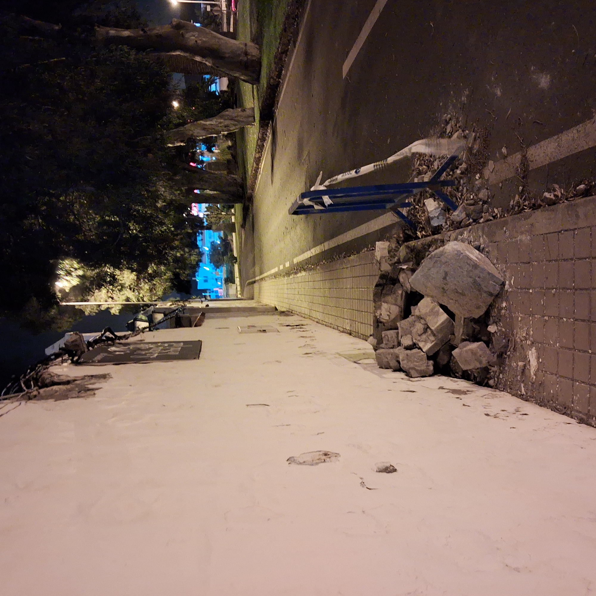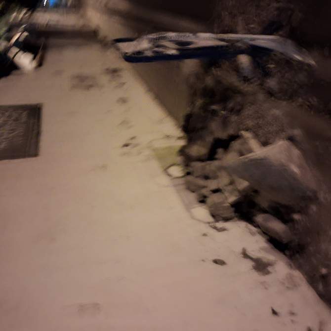 Sobre la misma acera permanecen los fragmentos que cayeron desde la parte superior del muro, en la fachada de la finca llamada Hoya de San Juan.