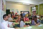 Interviene el Inspector de Educación de Zona, Francisco Castellano: Estimada Maribel, agradezco en primer lugar a Carmen Terrón Álvarez, digna sucesora de la dirección del Centro esteban Navarro Sánchez la invitación a este acto de tu jubilación para reconocer juntos tu destacada trayectoria profesional como docente, como reza en la tarjeta de presentación. Recientemente tuve la oportunidad en un acto de reconocimiento que te hicieron tus compañeros directores de la zona, de resaltar tu capacidad de liderazgo, basado en tu autoritas y saber, recientemente y socialmente reconocido, tu potestas. Te decía, en resumen, que la autoridad ejercida por los que saben, orientan y aconsejan y limitan el poder que está en manos de los que pueden y en tu persona se unen ambos conceptos.