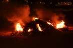 La hoguera está preparada, lenta cae la tarde sobre el horizonte. En las medianías y en la costa se divisan nubes de fogatas lejanas. El olor a quema de rastrojos, madera, ramas y viejos despojos inunda el aire. La hoguera ya está encendida, el crepitar de los materiales amontonados llega con estertores del calor que provocan. Largas e infernales llamaradas colorean las sombras y en la penumbra las formas se magnifican.