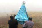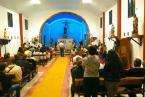 El acto religioso, que estuvo presidido por el párroco de la zona, el conocido Padre Báez, se desarrolló entre nieblas con el acompañamiento de una formación musical y de un nutrido grupo de vecinos, entre los que se encontraba el concejal centrista Juan Martel.