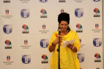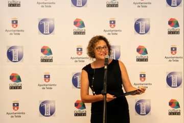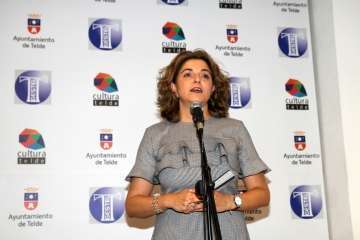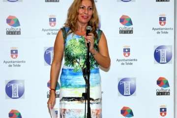 Desde la Concejalía de Cultura y la Empresa Municipal Gestel, quiero agradecerle que haya elegido Telde y este Teatro Municipal Juan Ramón Jiménez, para esta primera, y seguro, que especial exposición. Espero, de verdad, que sea la primera, pero no la última, que sea la primera de muchos éxitos y que podamos estar en las venideras. Muchas gracias a todos por estar aquí con nosotros para acompañar a Aránzazu que es la protagonista aquí esta noche en este acto. Muchas gracias”.