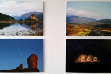 Al tener una visión positiva de la vida apunta con su objetivo en el sitio exacto, con el encuadre adecuado, controlando la luz, principal protagonista de sus fotografías, acaricia los elementos del paisaje, experimenta al máximo la belleza de los lugares que visita con su cámara, haciéndonos una llamada a la admiración e invitándonos a posar nuestra mirada y a disfrutar plácidamente cada detalle, reflejos de luz, brillos, texturas, siluetas. Viajera infatigable comparte sus recuerdos de los castillos de Escocia, glaciares de Islandia, nos pasea por El Hierro, por Marruecos, y nos descubre alguno de los rincones escondidos de Gran Canaria, paisajes que se mantienen al paso del tiempo y son cómplices de sus huellas a lo largo de su vida”.