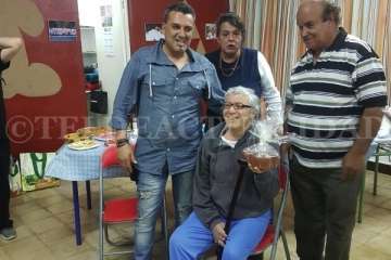 Su grupo le hizo entrega de una cerámica canaria y coloco tres imágenes suyas en las paredes del local de ensayo. Todo ello en una noche muy especial en la que Nino Jiménez estuvo acompañado por varios familiares. El concejal del Distrito Costa, Diego Ojeda (NC), tampoco quiso perdérselo.