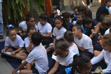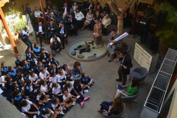 Guiados por Felipe, un personaje del actor Efraín Medina que encarnó a un declarado admirador de la obra de Juan y que hizo las veces de maestro de ceremonias, los escolares repasaron algunos de los hitos que el tándem que conformaron Juan y Fernando logró en favor de Gran Canaria, como la construcción del Puerto de La Luz, el Faro de Maspalomas o el Lazareto de Gando.