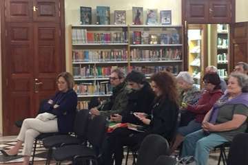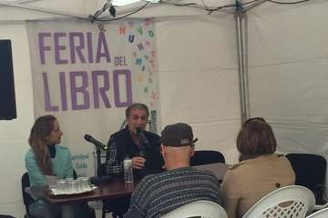 A las 16.00 horas se desarrolló en la sala de la biblioteca la segunda última sesión del taller de escritura impartido por el escritor Alejandro Palomas, premio nacional de Literatura Infantil y Juvenil 2016 y Premio Nadal 2018, mientras en el exterior del recinto abrían al público las casetas y la mesa de las editoriales canarias que participan en esta muestra: ATTK Puente Palo, Azulia, Ángel Caído y Dragaria.