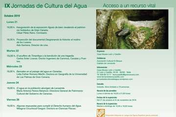 Telde.- La Casa-Museo León y Castillo, fiel a su compromiso de difundir y poner en valor nuestro legado patrimonial, organiza las IX Jornadas de Cultura del Agua: acceso a un recurso vital, que se desarrollará en dicho centro museístico entre el 21 y el 25 de octubre de 2019.