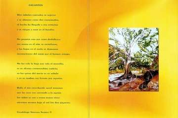 Gigantes: Dos árboles cortados se sujetan/ y se abrazan como dos enamorados,/ el hacha ha llegado a sus entrañas/ y se niegan a caer en el basalto./ No permite uno que otro desfallezca/ sus ramas en el aire se entrelazan,/ y las hojas en el suelo se derraman/ inconscientes del amor que el bosque atrapa./. No les vale la hoja que tala el resuello,/ es su alianza conmovedora caricia;/ en las gotas del rocío va su anhelo/ y en su sombra ese futuro que agoniza./ Baila el río escuchando aquel romance/que las aves van cantando a la agonía/ los nidos se van a otras ramas vivas/ mientras mueren bajo el sol los dos gigantes./