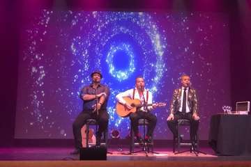 Con sólo 3 voces y una guitarra, SwingStar brindó al público un “viaje musical a través de los sentidos” con un amplio repertorio de temas inolvidables de todos los tiempos de artistas tan dispares como Los Panchos hasta David Guetta.