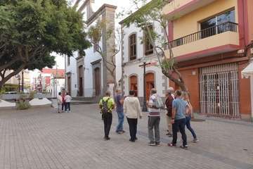 Un pequeño grupo de personas participa en la ruta histórica organizada por Turcón