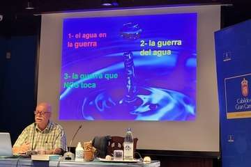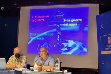 Por su parte, Ojeda, ingeniero industrial, expuso en la segunda ponencia del día que clausuró las Jornadas El agua y las guerras. En su intervención hizo un repaso de los conflictos generados a causa del agua desde la Antigüedad, ya sean bélicos, económicos, sanitarios o de supervivencia.