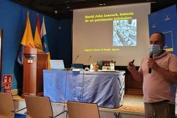 Álamo, ingeniero agrícola, docente y profesor de la Escuela de Capacitación Agrícola de Arucas y del IES de Arucas, habló sobre David John Leacock: historia de un patrimonio hidráulico.
