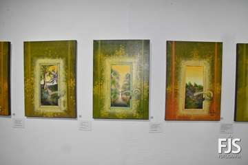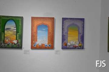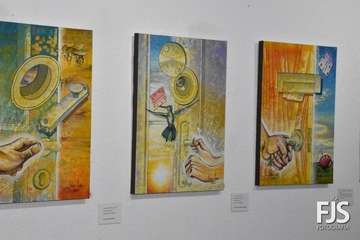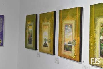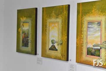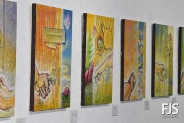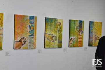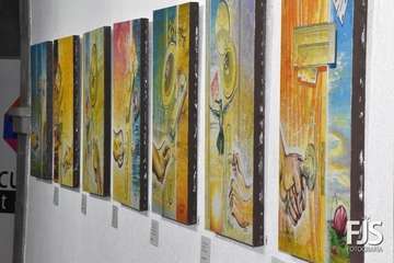 La exposición está formada por 36 piezas realizadas en madera sobre tela utilizando técnicas mixtas, acompañadas por unos 27 poemas.