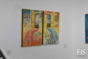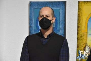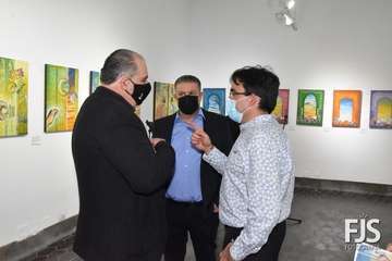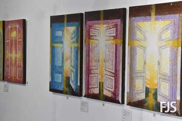 El artista Felipe Juan abrió  público este viernes por la tarde en las Casas Consistoriales de Telde su nuevo proyecto, DoorLuz, en el que fusiona la poesía y la pintura.