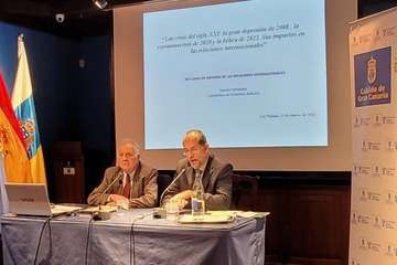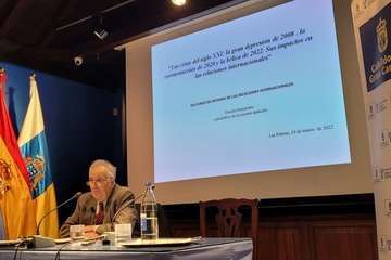La crisis del siglo XXI fue el título de la tercera ponencia que impartió el doctor Donato Fernández Navarrete en Telde en el marco del XIV Curso de Historia de las Relaciones Internacionales que, bajo la dirección del profesor Javier Ponce Marrero, se ha desarrollado en la Casa Museo León y Castillo de Telde.
