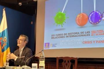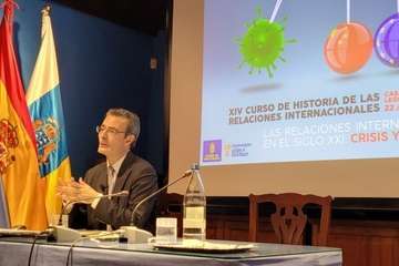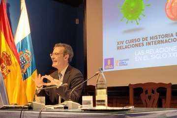 El catedrático Ricardo Martín de la Guardia, profesor de Historia Contemporánea en la Universidad de Valladolid, puso el colofón el pasado viernes al Curso de Historia de las Relaciones Internacionales de la Casa-Museo León y Castillo de Telde.
