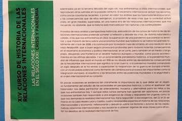 Martín de la Guardia expone: La crisis económica de 2008, sin duda la peor acaecida en el mundo capitalista desde la de 1929, volvió a demostrar la naturaleza cíclica del capitalismo y las limitaciones de la globalización. Además de los problemas económicos, las repercusiones sociales y económicas se acentuaron con la pandemia del Covid-19 y, ahora, con la guerra en Ucrania. El fortalecimiento de los populismos y, en parte, el descrédito de la democracia, los fundamentalismos, las desigualdades a nivel mundial, las nuevas formas de hacer la guerra, la emergencia de potencias regionales, en definitiva, el convulso programa mundial nos sirve de marco de reflexión sobre la evolución de las relaciones internacionales en estas últimas décadas.