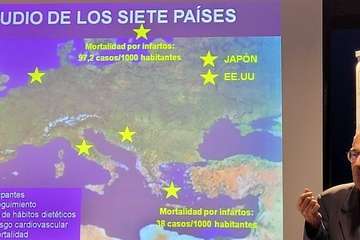 En base a estudios, investigaciones y seguimientos estadísticos de los hábitos alimentarios, consumo y consecuencias en la salud de los habitantes, el profesor proyecta tablas estadísticas con seguimientos mediante hábitos dietéticos, análisis de riesgos cardiovasculares y causas de mortalidad, situando geográficamente estos estudios con la Europa del norte y la Europa mediterránea. Dieta mediterránea como patrimonio cultural inmaterial de la Humanidad que a lo largo de 7.000 años de historia es el resultado de una forma de vida, de mar entre tierras, y el consumo variado de productos básicos para una nutrición equilibrada, ricos en fibra y resultado de una mezcla de culturas, religiones y tradiciones. Una forma de ver y vivir la vida. Combinación de variedad y moderación. Gracias al extraordinario clima y aguas del entorno mediterráneo.